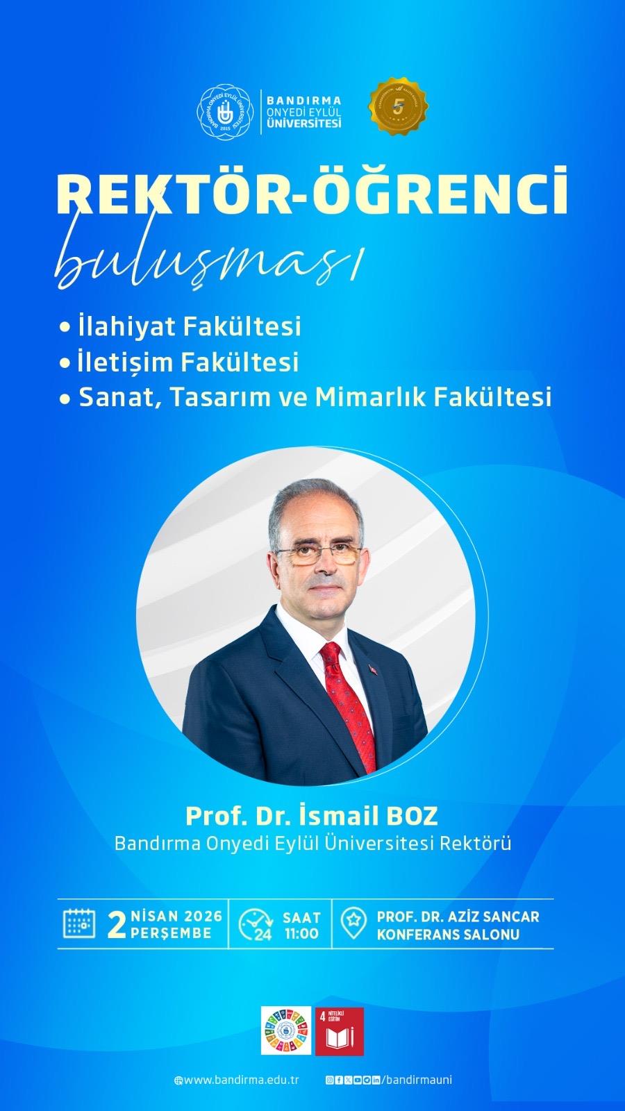 Üniversitemiz Rektörü Prof. Dr. İsmail Boz’un katılımıyla “Rektör-Öğrenci Buluşması” gerçekleştirilecektir.